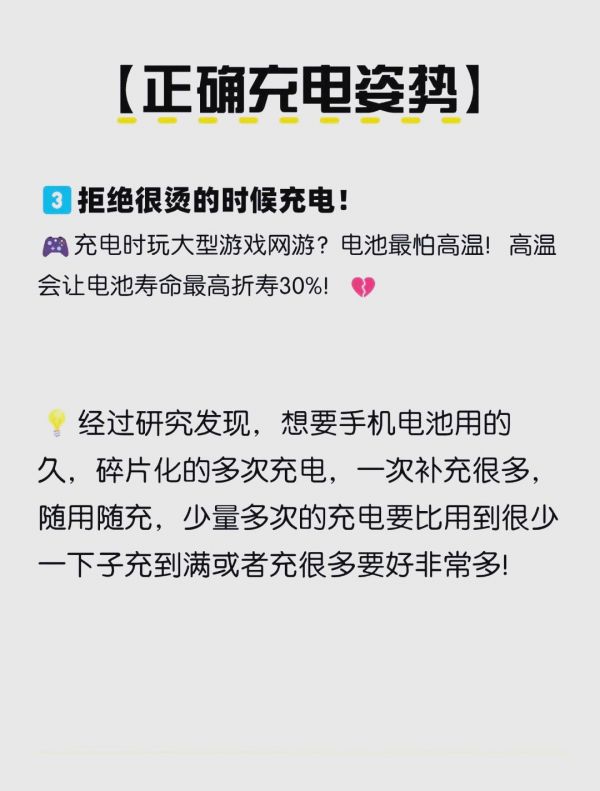 高溫會(huì)顯著加速電池老化。邊充電邊玩游戲會(huì)嚴(yán)重影響電池壽命!若充電時(shí)發(fā)熱明顯,請(qǐng)打開“充電溫度限制”功能(設(shè)置>系統(tǒng)和更新>開發(fā)人員選項(xiàng))。溫度過高縮短電池壽命,避免邊玩邊充與高溫環(huán)境下充電。