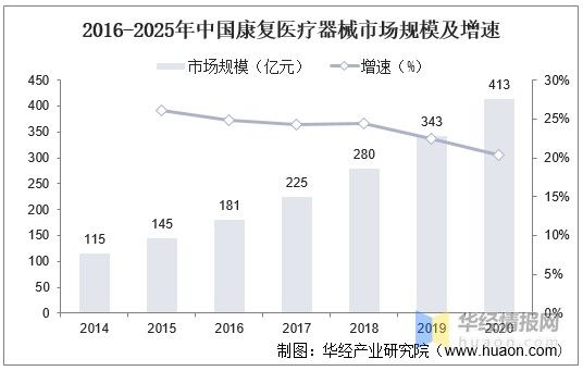 2016-2025年中國康復(fù)醫(yī)療器械市場規(guī)模及增速