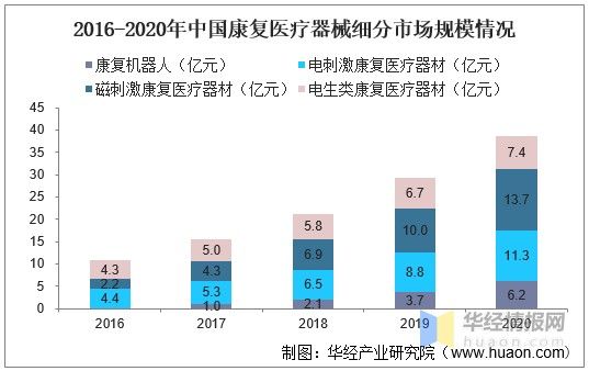 2016-2020年中國康復(fù)醫(yī)療器械細分市場規(guī)模情況