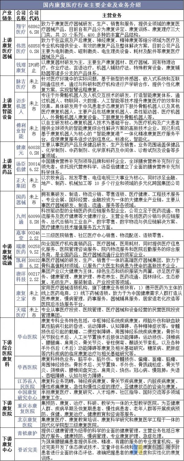國內(nèi)康復(fù)醫(yī)療行業(yè)主要企業(yè)及業(yè)務(wù)介紹