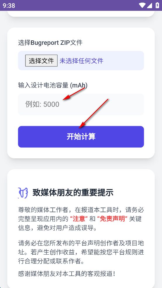 輸入您設(shè)備的【設(shè)計(jì)電池容量】(可在網(wǎng)上查詢或查看手機(jī)參數(shù))。點(diǎn)擊【開始計(jì)算】,即可看到結(jié)果。