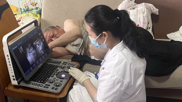 此次上門體檢涵蓋全面的健康檢查項(xiàng)目,家庭醫(yī)生攜帶血壓計(jì)、心電圖儀、超聲機(jī)等便攜式醫(yī)療設(shè)備,為失能老人提供“一站式”健康服務(wù)。體檢過程中,醫(yī)護(hù)人員細(xì)致開展問診、心肺聽診、中醫(yī)體質(zhì)辨識(shí)等基礎(chǔ)檢查,并進(jìn)行血壓測(cè)量、血常規(guī)、肝腎功能、血糖血脂等實(shí)驗(yàn)室檢測(cè),同步完成心電圖和B超檢查。針對(duì)每位老人的身體狀況和既往病史,醫(yī)護(hù)人員量身定制健康指導(dǎo)方案,耐心解答家屬疑問,從用藥規(guī)范到日常護(hù)理給予專業(yè)建議,確保醫(yī)療服務(wù)既有“溫度”更具“精度”。