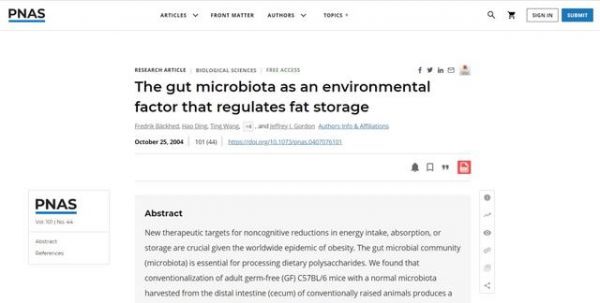 該實(shí)驗(yàn)通過對小鼠的研究,證實(shí)了腸道菌群可以調(diào)節(jié)小鼠的脂肪代謝、降低消耗脂肪的基因的活動(dòng)、升高合成脂肪的基因的活性、令動(dòng)物過度合成和積累脂肪。該篇論文是證實(shí)腸道菌群與肥胖之間聯(lián)系的開山之作,而在此之后,有大量科學(xué)研究都在進(jìn)一步鞏固這個(gè)結(jié)論:肥胖與腸道菌群有關(guān)。所以說,越減越肥的“易胖體質(zhì)”真的不怪你,都是腸道菌群在作怪。