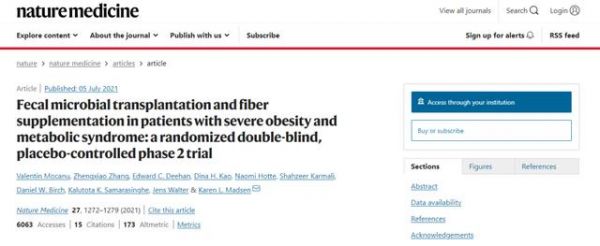 有了這一新的解題思路,我們便開始暢想:有沒有方法將瘦子的腸道菌群移植給胖子呢?這種新的減肥思路也已有實(shí)驗(yàn)團(tuán)隊(duì)踐行,Nature子刊上一篇關(guān)于移植瘦子腸道菌群的臨床試驗(yàn)論文Fecal microbial transplantation and fiber supplementation in patients with severe obesity and metabolic syndrome: a randomized double-blind, placebo-controlled phase 2 trial成功實(shí)踐了這種菌群移植方法。