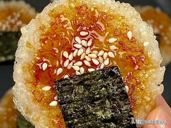 米飯壓薄片,撒海苔芝麻,烤10分鐘(200℃)。