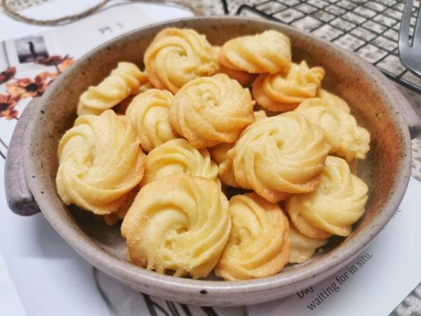 主要食材:低筋面粉150克,玉米淀粉50克,動物黃油100克,淡奶油100克,糖粉40克,鹽1克。