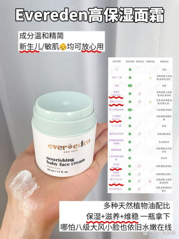 (像我家寶寶一直用的Evereden高保濕面霜,像新生兒用的必須是成分要安心,這個(gè)牌子是幾位皮膚科醫(yī)生???媽媽研發(fā)的,都是天然植物基底,沒(méi)有香精酒精和有害防腐劑,就很放心給孩子用
