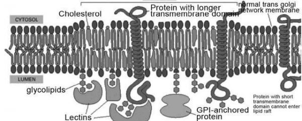 細(xì)胞膜通常被描述為“流體馬賽克”。它們由具有近似橄欖油稠度的脂質(zhì)相組成,上面鑲嵌著蛋白質(zhì),其中一些可以自由移動(dòng),而另一些則保持在適當(dāng)?shù)奈恢谩L囟ǖ娘柡椭舅帷饕鞘奶既舛罐⑺狨?、十六碳棕櫚酸酯和十八碳硬脂酸酯——形成將許多蛋白質(zhì)附著到膜上的分子錨。這些蛋白質(zhì)通常會(huì)錨定在稱為“脂筏”的特定區(qū)域,這些區(qū)域富含飽和脂肪酸以提供所需的穩(wěn)定性,以防止這些蛋白質(zhì)從其適當(dāng)位置漂浮。