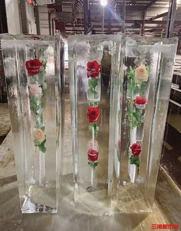在這個夏天,定制冰塊服務(wù)解鎖了超多玩法。記者在制冰廠采訪時注意到,有商家定制了各種不同的冰塊消費場景。有將零食和水果凍在冰塊中,專給小朋友鑿冰探索用的“新玩具”;有的將紅包或獎品放入冰塊,用于舉辦企業(yè)的慶典活動;還有將玫瑰等鮮花放入冰塊,打造成超吸睛的打卡墻……相應(yīng)的,費用也會增加。