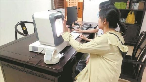 記者趁機(jī)體驗(yàn)了一把“AI醫(yī)生”看診。一臺(tái)有圖像識(shí)別功能的機(jī)器連著電腦,記者將臉湊近機(jī)器,首先進(jìn)行面診和舌診。通過(guò)圖像識(shí)別,AI會(huì)識(shí)別客人的臉色,舌苔和舌根的形狀、顏色,將采集到的信息傳遞到電腦端。接著是手診,將手掌對(duì)準(zhǔn)機(jī)器即可。最后,機(jī)器左右兩邊各有一個(gè)脈診儀,如同測(cè)量血壓一般,記者把左右手的手腕分別放進(jìn)去,機(jī)器便自動(dòng)把脈。把脈時(shí),可以在電腦顯示屏上清晰看到寸、關(guān)、尺三部脈的曲線圖??丛\之后,電腦便立即顯示四診結(jié)果,全程僅用了3分鐘。