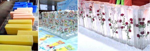 隨著生意越做越大,2020年,孫超在杭州建立了新廠,他不再滿足于傳統(tǒng)模式,而是大膽創(chuàng)新,推出定制冰塊——比如有些釣魚愛(ài)好者會(huì)定制彩色冰塊用于物理降溫,一部分還會(huì)用于漁獲保鮮;有些面積較大的場(chǎng)所定制大冰塊會(huì)被用于室內(nèi)降溫,通過(guò)融化吸收熱量實(shí)現(xiàn)快速降溫;在很多時(shí)候,冰塊里會(huì)嵌入水果、飲料、美食、鮮花,甚至結(jié)合商場(chǎng)活動(dòng)、游樂(lè)園娛樂(lè)項(xiàng)目,將冰塊做成好看的造型,打造“鑿冰尋寶”等互動(dòng)體驗(yàn)。這種創(chuàng)意產(chǎn)品迅速受到了市場(chǎng)的青睞,也讓他的制冰生意從“降溫剛需”升級(jí)為“時(shí)尚消費(fèi)”。