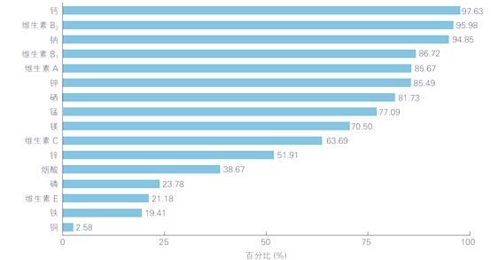 中國(guó)成年人對(duì)于微量營(yíng)養(yǎng)素的攝入普遍不足,尤其是鈣的攝入量,不足的百分比最高。值得注意的是,中國(guó)成人每日鈉的攝入量平均高達(dá)5139.61毫克,遠(yuǎn)超過(guò)世界衛(wèi)生組織(WHO)推薦的攝入量,僅有四分之一的中國(guó)成人能夠達(dá)標(biāo)。