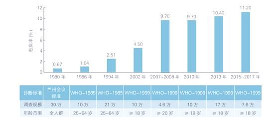 在2015至2017年間,根據(jù)WHO的診斷標(biāo)準(zhǔn),中國(guó)成人糖尿病的患病率高達(dá)11.2%。然而,糖尿病知曉率及治療率均不足半數(shù)