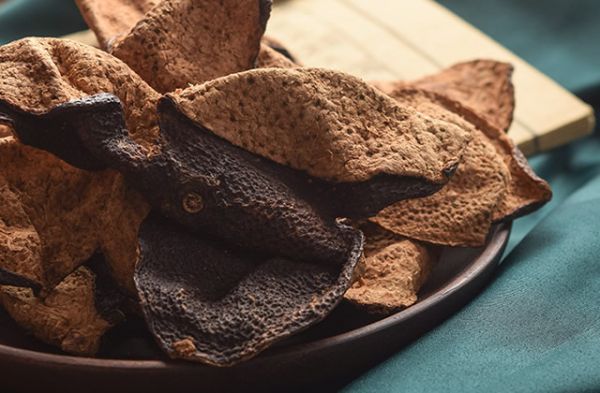 15年以上的陳皮外表顏色比較深,一般是棕色、深褐色或者是黑色,果皮十分輕薄,而且呈現(xiàn)自然卷曲的狀態(tài)。聞起來(lái)有很濃的陳香味。詳細(xì)>>