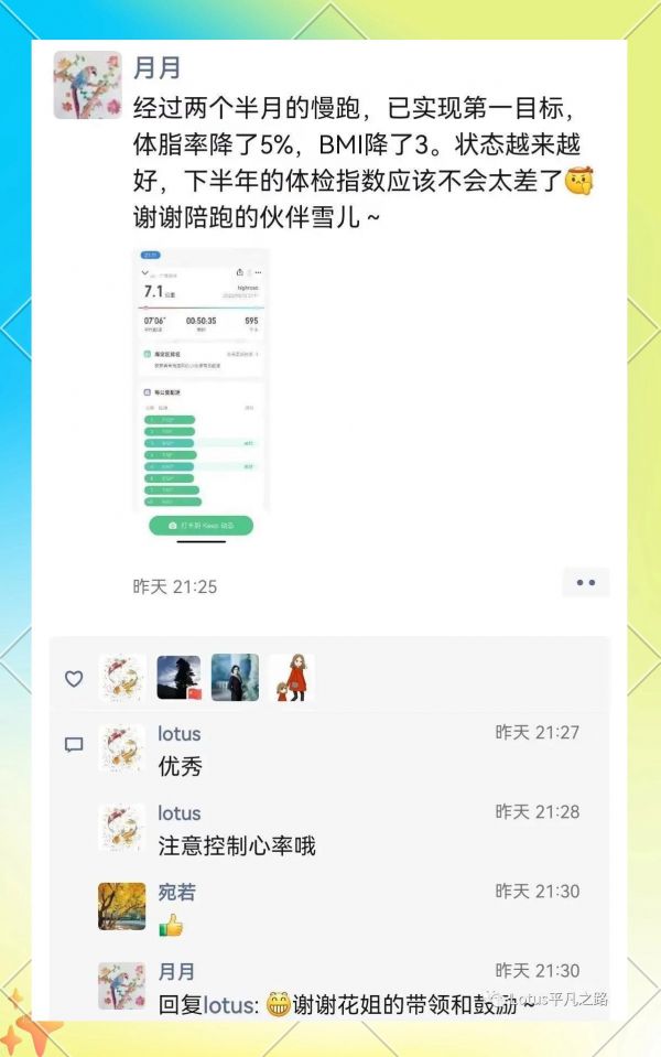 如今,我已經(jīng)堅(jiān)持跑步三個(gè)月了。為了確保心率安全,我逐漸將配速提升到7至8分鐘/公里,同時(shí)確保極限心率下的配速不超過6分鐘/公里。我隔天會(huì)跑5至10公里,體重已經(jīng)減輕了12斤,而且還在持續(xù)減少中。
