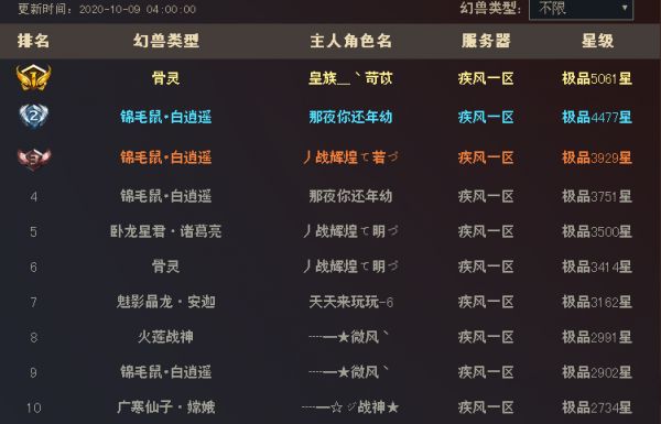 下面看看本區(qū)的幻獸排行榜,看看本區(qū)的真正實(shí)力