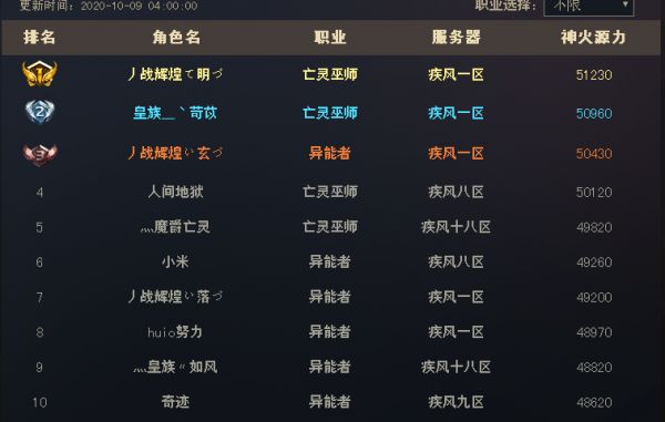 本區(qū)神火評(píng)分超過5W分的就有4位!本區(qū)神火第十名也有著48620的評(píng)分.