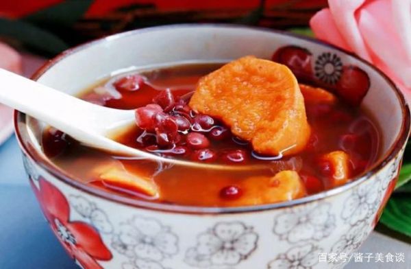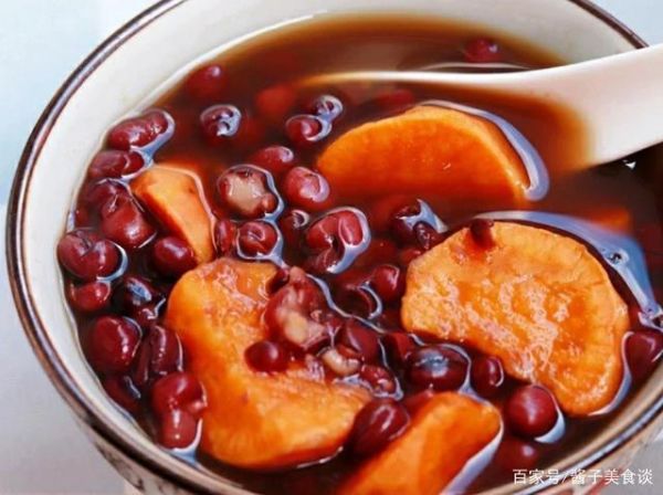 紅豆不好煮熟,所以最好提前一個晚上用水浸泡,然后放進電飯煲里面煮熟,加入糖攪拌腌制。然后就可以煮糖水了,鍋內(nèi)加入清水,放入適量的紅糖,紅糖看自己的喜好添加,然后加入去皮切成小塊的紅薯和紅豆,大火煮15分鐘,紅薯煮熟了就可以出鍋了。