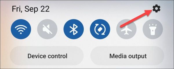 首先,我們從屏幕頂部向下滑動(dòng)以顯示快速設(shè)置磁貼。點(diǎn)擊齒輪圖標(biāo)以打開(kāi)設(shè)置。