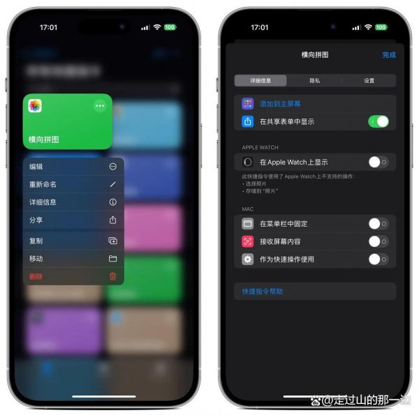 有的朋友在分享分析數(shù)據(jù)那一步,在分享菜單中找不到快捷指令,那是因?yàn)槟銢]有打開顯示設(shè)置,長(zhǎng)按相應(yīng)的快捷指令,從菜單中選擇“詳細(xì)信息”,在頁(yè)面中打開“在共享表單中顯示”設(shè)置就可以看到了。