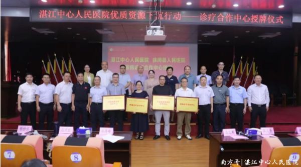 當天,我院和徐聞縣衛(wèi)生健康局、徐聞縣人民醫(yī)院的領導專家共同見證了兩院診療合作中心的授牌。我院將與徐聞縣人民醫(yī)院合作建設腫瘤、呼吸疾病、心血管疾病和眼病診療合作中心。通過建設標準化合作中心,全面加強兩院在技術、服務、科研等多方面的協(xié)作,進一步強化徐聞縣人民醫(yī)院的??颇芰ㄔO,提升??萍膊≡\療水平。