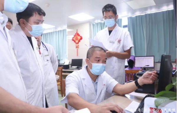 在義診進行的同時,副院長林海峰還率領醫(yī)、藥、護團隊,分別到徐聞縣人民醫(yī)院的神經內科、腫瘤科、呼吸與危重癥醫(yī)學科、心內科和感染性疾病科開展聯合查房。對復雜病例,專家們詳細地分析病理,闡述診斷思路,給出用藥指導,并現場示范指導。