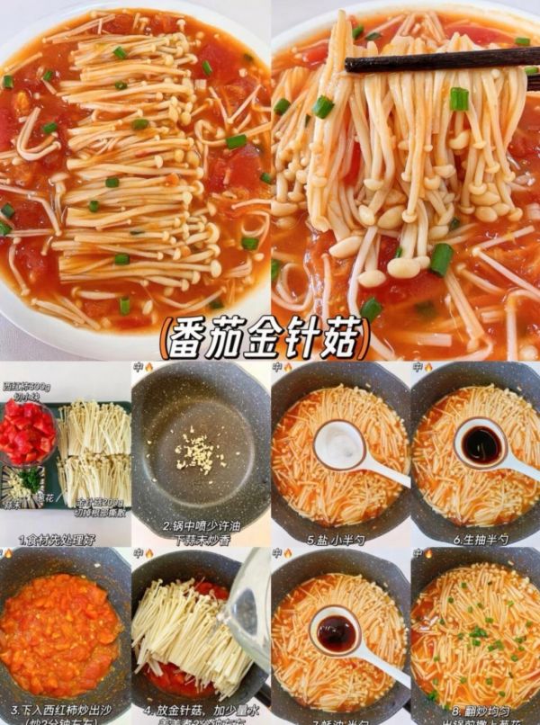 金針菇和番茄簡直是絕配!金針菇在番茄湯汁里煮得軟嫩入味,酸甜可口,湯汁拌飯都能炫好幾碗,做法還超簡單,廚房新手也能輕松hold住!