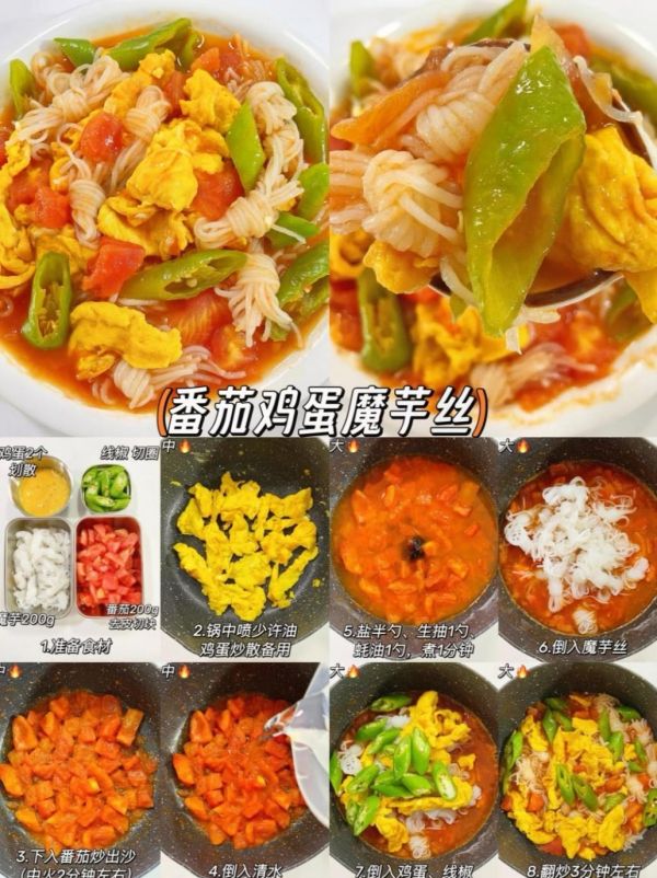 健康又飽腹的番茄雞蛋魔芋絲來啦!魔芋絲Q彈爽滑,裹滿了濃郁的番茄雞蛋醬汁,再加上青椒提味,口感豐富,好吃不胖,減脂期也能盡情享受美味~