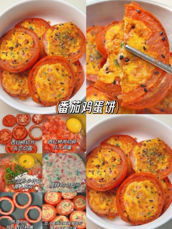 把番茄和雞蛋做成小餅,顏值和美味雙在線!咬一口,外酥里嫩,番茄的酸甜和雞蛋的鮮香完美結合,撒上黑芝麻和蔥花,香迷糊了,當早餐再合適不過啦~