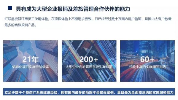 再后來(lái),匯聯(lián)易陸陸續(xù)續(xù)對(duì)接了越來(lái)越多的商旅消費(fèi)供應(yīng)商,聚合酒店、機(jī)票、高鐵、出行用車(chē)、商務(wù)宴請(qǐng)、會(huì)務(wù)預(yù)訂、辦公采購(gòu)等一系列場(chǎng)景服務(wù)于一體,商旅安排輕松搞定,匯聯(lián)易成為對(duì)接消費(fèi)服務(wù)商最多的一家報(bào)銷(xiāo)平臺(tái),同時(shí)實(shí)現(xiàn)了消費(fèi)免墊資、報(bào)銷(xiāo)免貼票等功能。