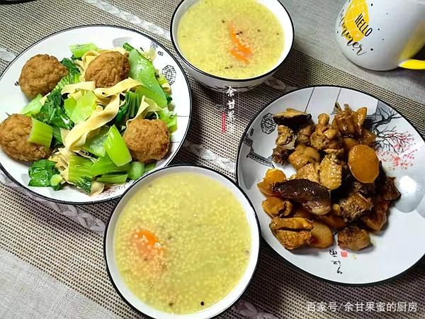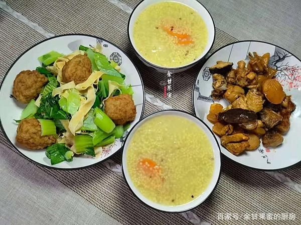 晚餐要吃少,而我家還有學(xué)生回家吃飯,自己做晚餐,有粗有細(xì),合理搭配,午餐燒一份雞肉,留著小份備于晚餐;另外用干絲、青菜、肉丸同燒,邊燒菜邊煮粥,15分鐘要上桌,清淡爽口比快餐店里的更味美,食材搭配有粗有細(xì),小米粥好喝,煮粥過(guò)程有技巧,詳細(xì)做法呈上,感謝大家支持。
