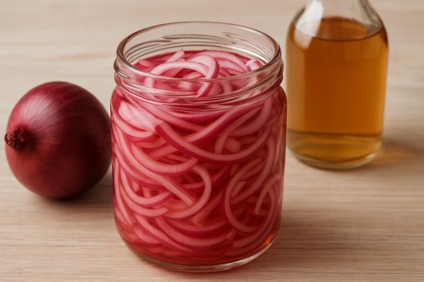 01. 洋蔥切絲或切片,平鋪在乾淨的玻璃罐中。02. 倒入足量的醋,要把洋蔥淹沒助比較好。03. 如需改善酸味,可加入少許蜂蜜調(diào)味。04. 密封冷藏,醃漬1~2天後即可食用。05. 冷藏可保存約1週。