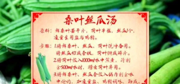 另一道推薦的是桑葉絲瓜湯。將適量新鮮桑葉、半張荷葉和1個(gè)絲瓜洗凈。桑葉和荷葉撕成小片,絲瓜切成條狀。鍋中加入1000ml水,放入荷葉煎煮,煮至水量減半后撈出荷葉,再加入桑葉和絲瓜條繼續(xù)煮。煮好后,加入適量鹽和雞精調(diào)味,一款清新的桑葉絲瓜湯就做好了。