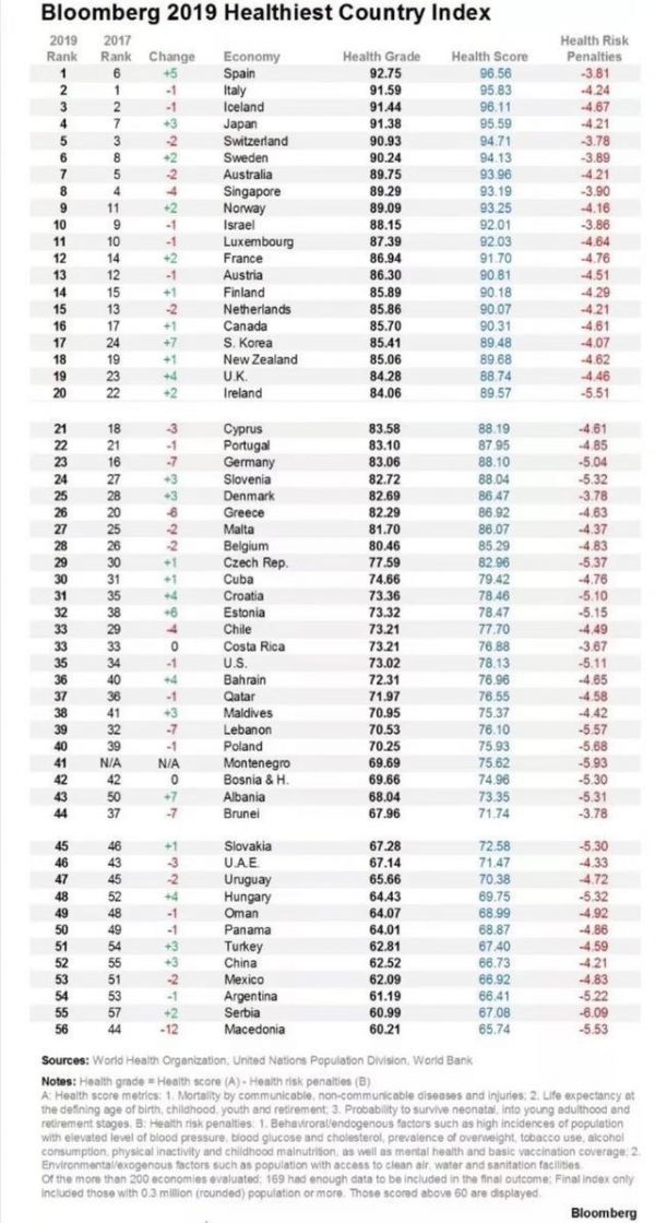 日前,2019年版彭博健康國家指數(shù)榜單新鮮出爐,西班牙以健康度高達92.75分,摘下全球最健康國家榜首,中國排名上升三位至第52名。相關研究人員表示,西班牙人健康長壽的秘訣,或許可以從他們“地中海飲食+特級初榨橄欖油”的飲食習慣里找到線索。