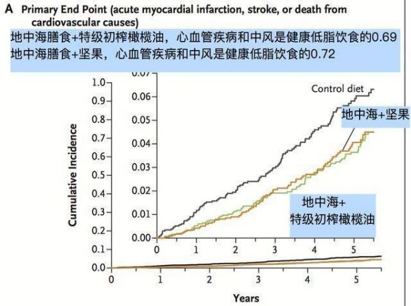 地中海飲食源自于環(huán)地中海地區(qū)的傳統(tǒng)飲食形態(tài),特色是以豆科植物、天然谷物、魚類、少量肉以及水果和蔬菜為主,佐以大量橄欖油和乳制品(芝士和乳酪)等,被認為是一種很健康的飲食模式。此前一篇在《新英格蘭醫(yī)學雜志》上發(fā)表的研究表明“比起低脂飲食,配有特級初榨橄欖油的地中海飲食導致心血管疾病和中風的幾率更低”。