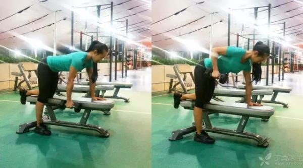 3. 背部適當(dāng)張緊,支撐好身體,拿著啞鈴的胳膊啞鈴自然下垂,手握緊;