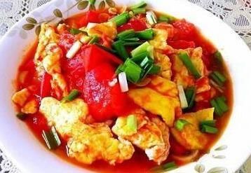 用料:番茄2個(gè);雞蛋3-4個(gè);蔥花少許