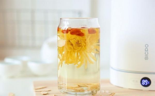 【西洋參金絲皇菊元?dú)獠琛课餮髤?片,金絲皇菊1朵,枸杞1小把,冰糖20克1,把除冰糖以外大的所有的材料放入杯子里。