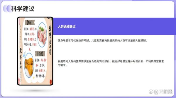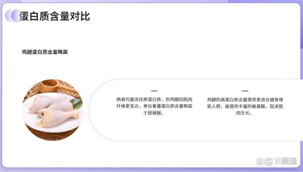 科學建議:健身增肌者可優(yōu)先選擇雞腿,兒童及需補充微量元素的人群可適量攝入琵琶腿。