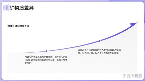 - 礦物質差異:雞腿的鐵含量顯著高于琵琶腿,是補鐵的良好來源;琵琶腿則含有更多鋅元素,有助于增強免疫力。