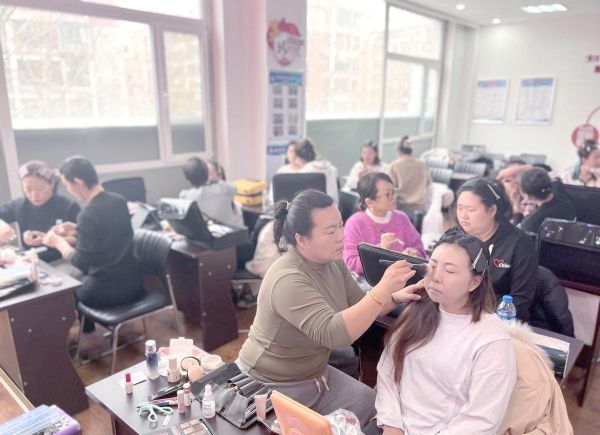 在培訓(xùn)過(guò)程中,我們特別邀請(qǐng)了沈陽(yáng)市育工職業(yè)技術(shù)學(xué)校的專業(yè)老師,深入淺出地講解了如何打造簡(jiǎn)單妝容和新娘美妝等技巧,并詳細(xì)闡述了上妝過(guò)程中的各類要點(diǎn),如護(hù)膚品的恰當(dāng)使用、彩妝的色彩搭配藝術(shù)、以及妝造工具的精挑細(xì)選等。老師還親自示范了日常職業(yè)妝容和生活?yuàn)y容的詳細(xì)步驟,并耐心解答了學(xué)員們?cè)诨瘖y過(guò)程中遇到的疑難問(wèn)題,同時(shí)分享了一些實(shí)用的化妝小技巧。在老師的細(xì)心指導(dǎo)下,學(xué)員們積極參與,邊聽(tīng)邊學(xué),熱烈討論,努力尋找適合自己的妝容,整個(gè)課堂氣氛既輕松又活躍。