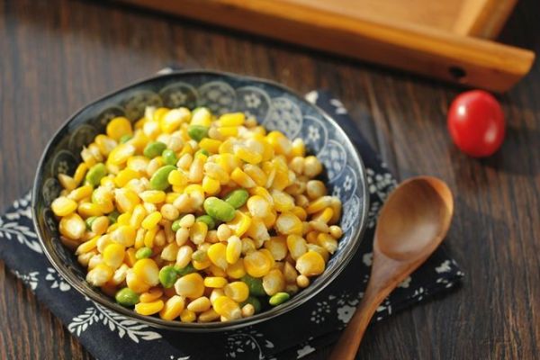 制作:燒鍋水加入少許鹽和油, 將玉米粒和毛豆米入鍋中焯煮兩分鐘后撈出; 熱鍋涼油,下入玉米粒等翻炒幾下,加入少許鹽調(diào)味,加入少許水淀粉勾芡; 出鍋前加入松仁進鍋翻炒均勻即可。