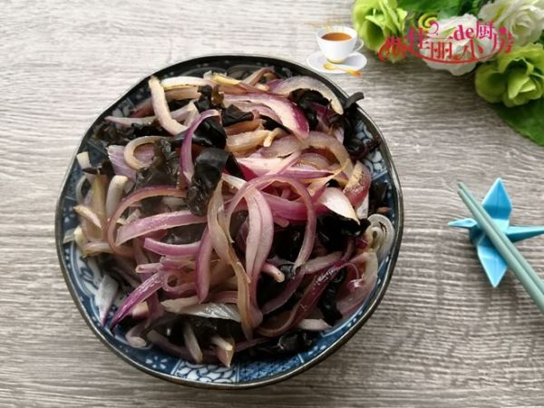 制作:燒鍋水,將泡軟的木耳放入鍋中焯煮,焯時加入少許鹽,焯煮兩分鐘即可撈出; 燒熱鍋放入適量的油,放入洋蔥進去翻炒; 爆香后加入木耳絲進去翻炒,加入少許鹽調(diào)味,翻炒均勻即可。