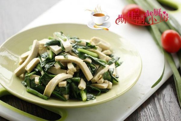 制作:燒熱鍋放入適量的油,將白干子放入鍋中煸炒; 將白干子表面微微煸炒發(fā)黃; 加入韭菜段進鍋大火翻炒; 炒至微微變色后加入少許鹽調(diào)味,翻炒均勻即可。
