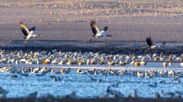 冬日時節(jié),拉薩市林周縣迎來大批越冬候鳥,黑頸鶴、斑頭雁、赤麻鴨等候鳥在河谷、湖泊等地覓食、休憩。冬日時節(jié),拉薩市林周縣迎來大批越冬候鳥,黑頸鶴、斑頭雁、赤麻鴨等候鳥在河谷、湖泊等地覓食、休憩。
