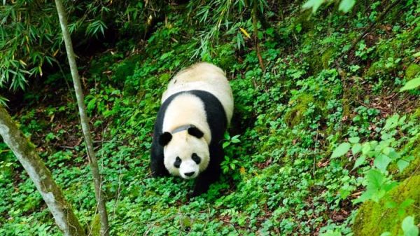 在位于大熊貓國家公園臥龍片區(qū)內天臺山的大熊貓第二階段野化培訓場內,母熊貓“賢賢”聽到工作人員牟仕杰的呼喚,從竹林中出來(2024年6月24日攝)。新華社記者 沈伯韓 攝  大熊貓國家公園四川片區(qū),這片1.93萬平方公里的土地上棲息著占園內種群91.6%的1227只野生大熊貓。