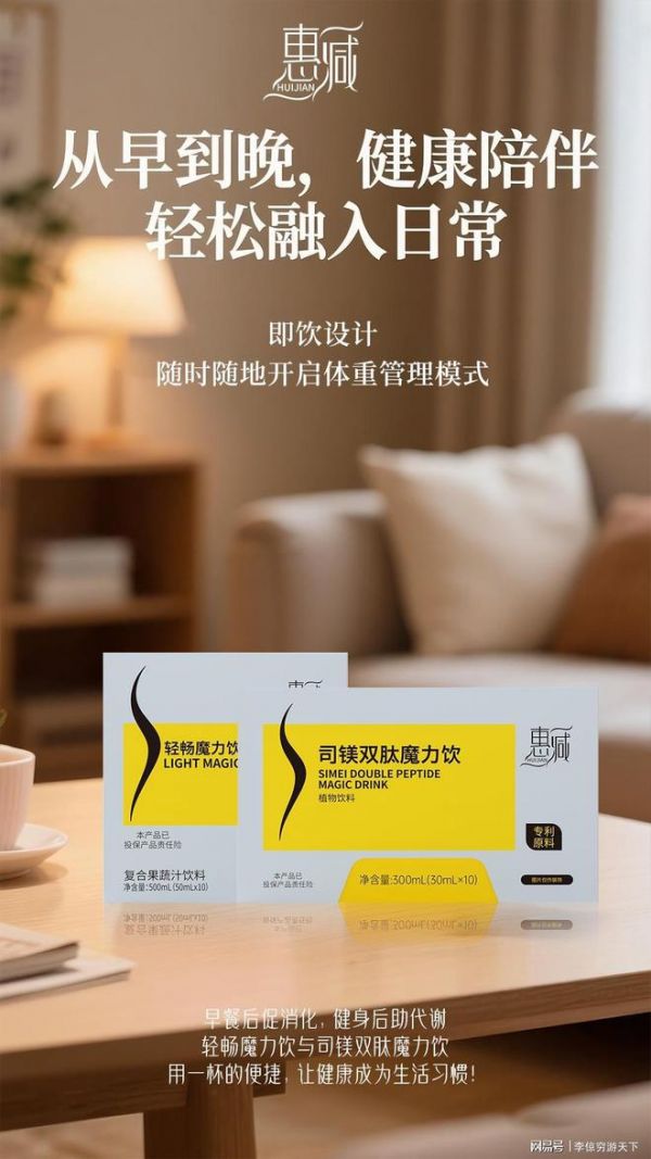 而惠減司鎂雙肽魔力飲,則基于創(chuàng)新的類GLP-1機(jī)制成分,溫和調(diào)節(jié)餐后血糖、抑制食欲。搭配柑橘果粉、海藻粉等加速代謝燃脂,實(shí)現(xiàn)科學(xué)減脂。同時(shí),鎂元素與雙肽科技協(xié)同作用,促進(jìn)肌膚膠原蛋白合成,增強(qiáng)皮膚彈性,減少細(xì)紋。這讓網(wǎng)紅在減脂的同時(shí),也能保持肌膚的緊致與光澤,滿足他們在鏡頭前的完美形象需求。