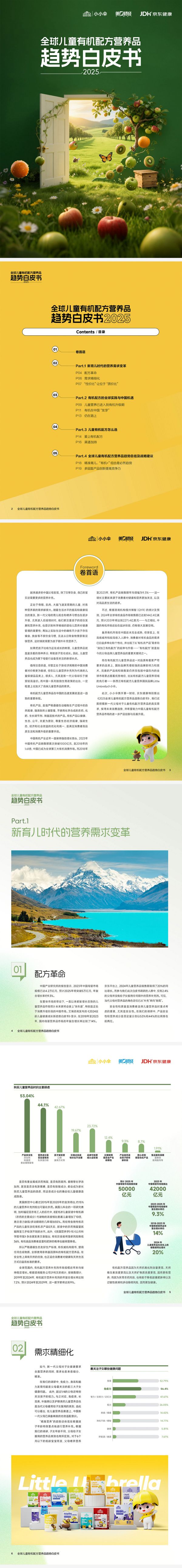 此次,有機(jī)配方兒童營養(yǎng)品品牌小小傘攜手第一財經(jīng)、京東健康特別推出《2025全球兒童有機(jī)配方營養(yǎng)品趨勢白皮書》,我們試圖挖掘新一代父母對于兒童有機(jī)配方營養(yǎng)品的真實需求,探尋未來消費趨勢,并希望助力中國兒童有機(jī)配方營養(yǎng)品市場的進(jìn)一步產(chǎn)品創(chuàng)新與完善升級。