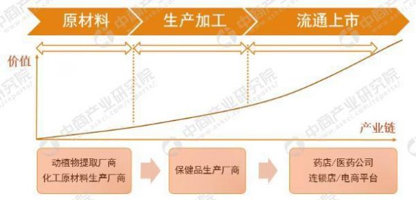 保健品行業(yè)產(chǎn)業(yè)鏈上游是各種原材料生產(chǎn)商,主要包括動植物提取廠商、化工原材料生產(chǎn)廠商及部分制藥廠等。下游是流通領(lǐng)域的各種渠道,主要包括藥店、醫(yī)藥公司、連鎖店和電商平臺等。作為中游的保健品生產(chǎn)企業(yè)主要負(fù)責(zé)生產(chǎn)加工和包裝等。