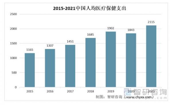 2015-2021中國(guó)人均醫(yī)療保健支出(元)